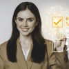 mujer-negocios-joven-comprobando-cuadro-lista-verificacion-satisfaccion-espac...